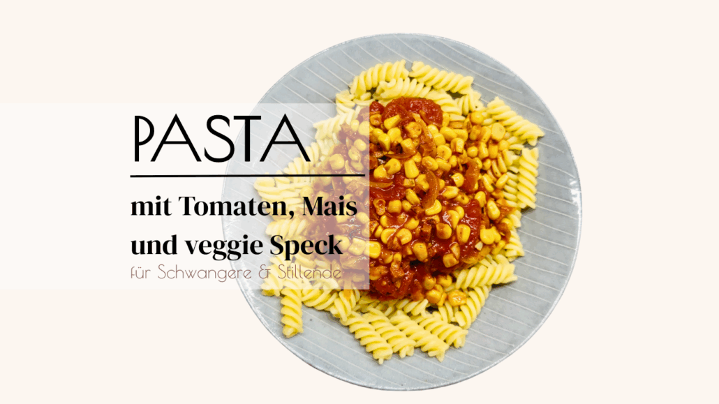 Nein, nicht schon wieder Nudeln“ – said no one ever. Und erst recht nicht, wenn in unter 15 Minuten dampfende Nudeln mit cremiger Mais-Tomatensoße auf dem Tisch stehen. Alles, was du dafür brauchst, ist: vegetarischen Speck, Zwiebel, Knoblauch, Mais – kurz anbraten, Tomaten dazu, fertig ist die Tomaten-Soße für Nudeln. Eine Tiefkühlpizza ist da auch nicht schneller und bei TK-Pizza hast du halt auch noch null Einfluss auf die Zutatenliste. Bei diesem schnellen Pastagericht weißt du ganz genau, was im Topf landet. Nudeln mit Mais in Tomaten Soße sind perfekt, wenn du schwanger bist und keine Energie für lange Stehzeiten in der Küche hast – und genauso perfekt, wenn du stillst und zwischen den Stillpausen schlichtweg keine Zeit für aufwendige Küchenspielereien bleibt. Nudeln rein, Soße rühren, fertig: mehr „Mama-friendly“ wird’s nicht.